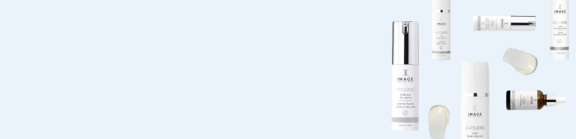 AGELESS von IMAGE Skincare – diese äußerst wirksame Pflegereihe nutzt AHA-Mischungen, Nutri-Peptide, Retinol, Aufhelleragentien und Antioxidantien, um Haut jünger aussehen zu lassen. Mit dieser wirkungsvollen Kur können feine Linien, Falten und andere umweltbedingte Alterungsanzeichen behandelt und verhindert werden.