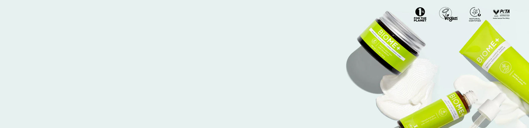 Unsere mikrobiom-freundliche Hautpflegekollektion BIOME+ wurde entwickelt, um die natürliche Hautbarriere zu schützen und zu stärken. Diese dreistufige Hautpflegeroutine umfasst einen nährenden Reinigungsbalsam, ein intensiv feuchtigkeitsspendendes Hybrid-Öl-Serum und eine wolkenartige Feuchtigkeitscrème, die alle mit pflanzlichem Squalan formuliert sind, um die Haut zu pflegen, zu beruhigen und zum Strahlen zu bringen.